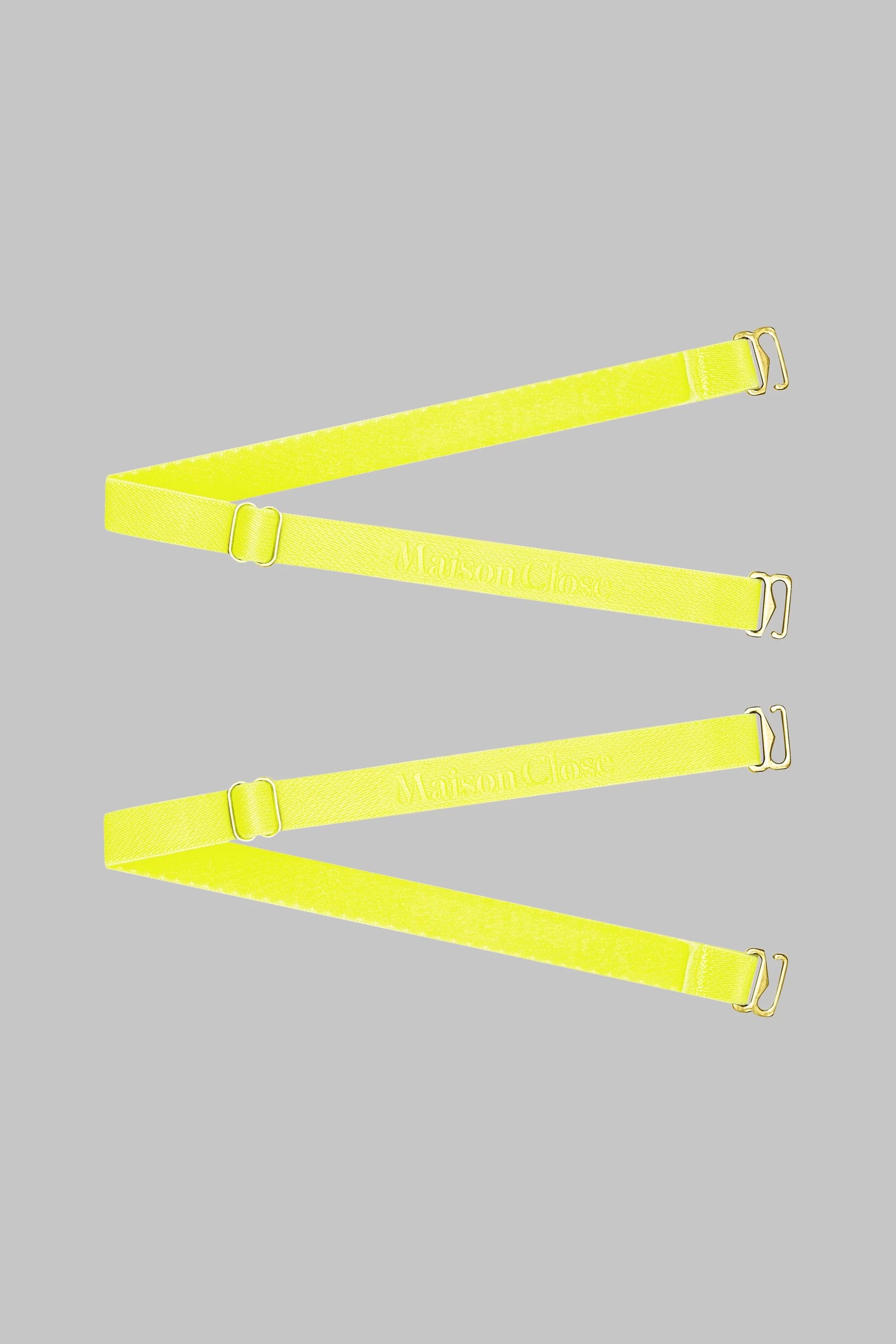 Deux élastiques string Signature néon amovibles et réglables aux finitions dorées. A jouer avec les autres Signature disponibles dans plusieurs coloris. L’occasion pour chaque Muse de créer son mix and match survitaminé.