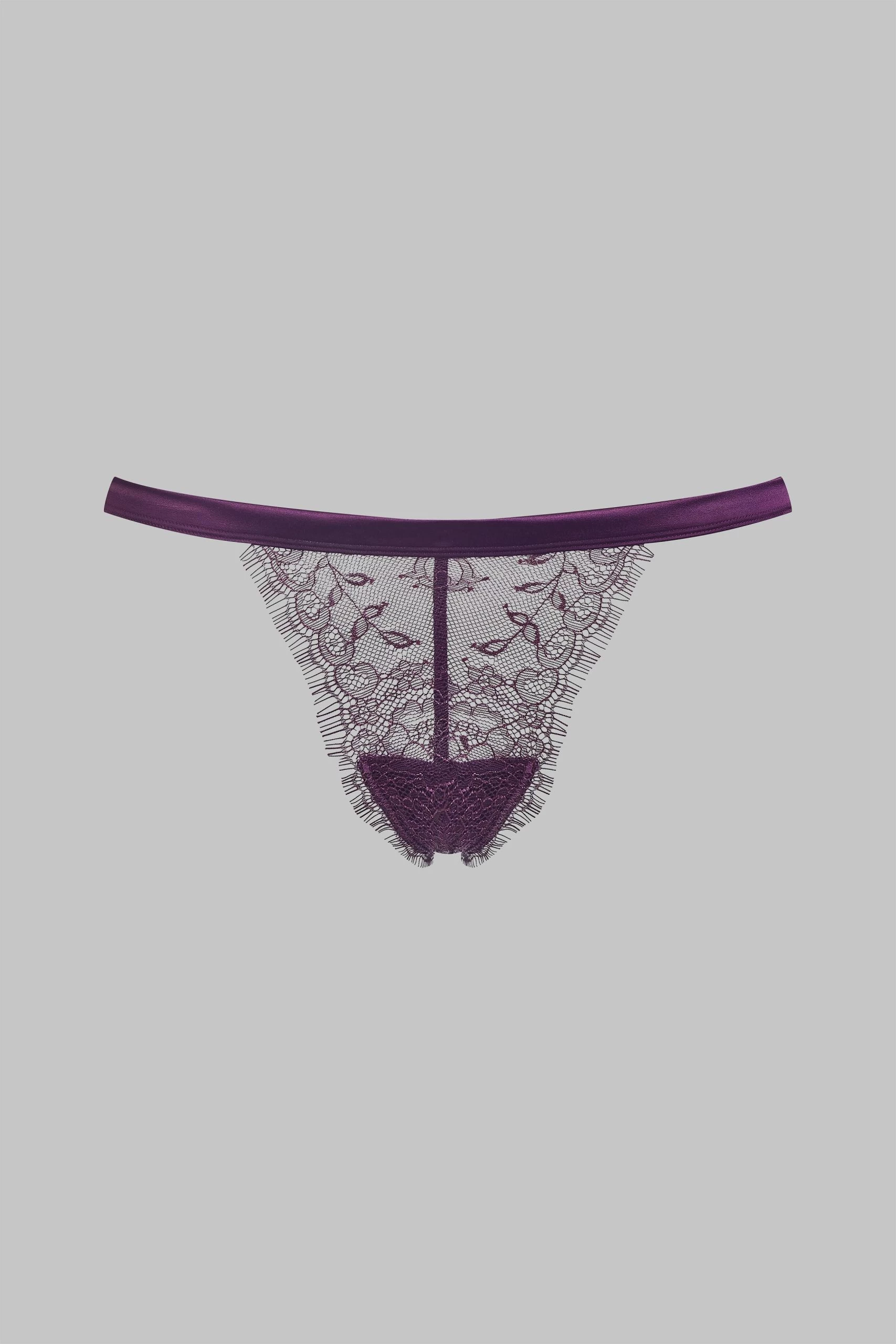 Un mariage iconique d’une dentelle à cils incroyablement fine et du satin violet profond. Cette collection poétique à la délicate transparence, esquisse des arabesques sur la peau tout en offrant la promesse d’être audacieuse.