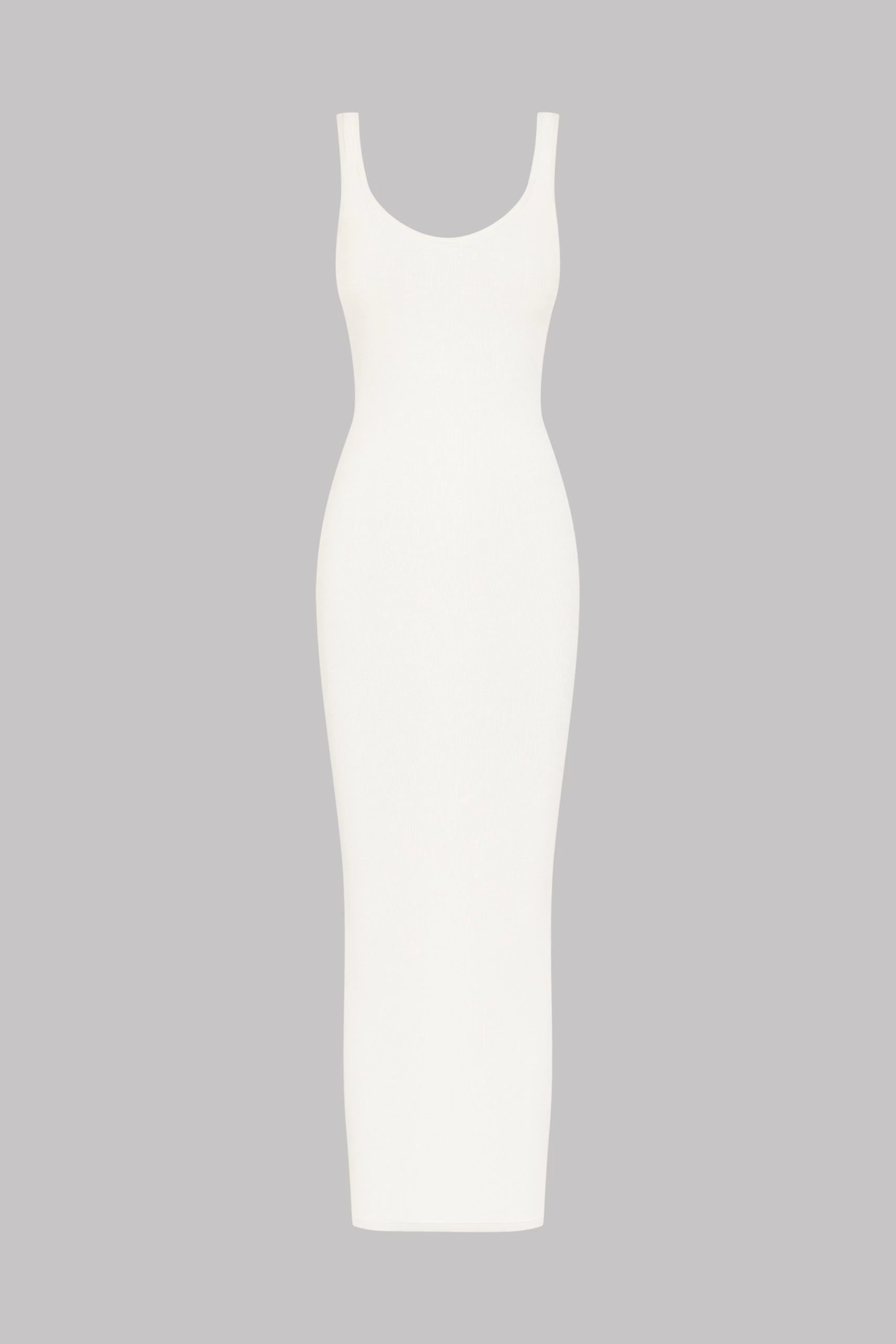 Robe longue à larges bretelles au toucher unique. Modal côtelé ultra extensible, doux et léger qui s’étire en brillance comme en transparence. Coupe moulante et épurée au décolleté arrondi.